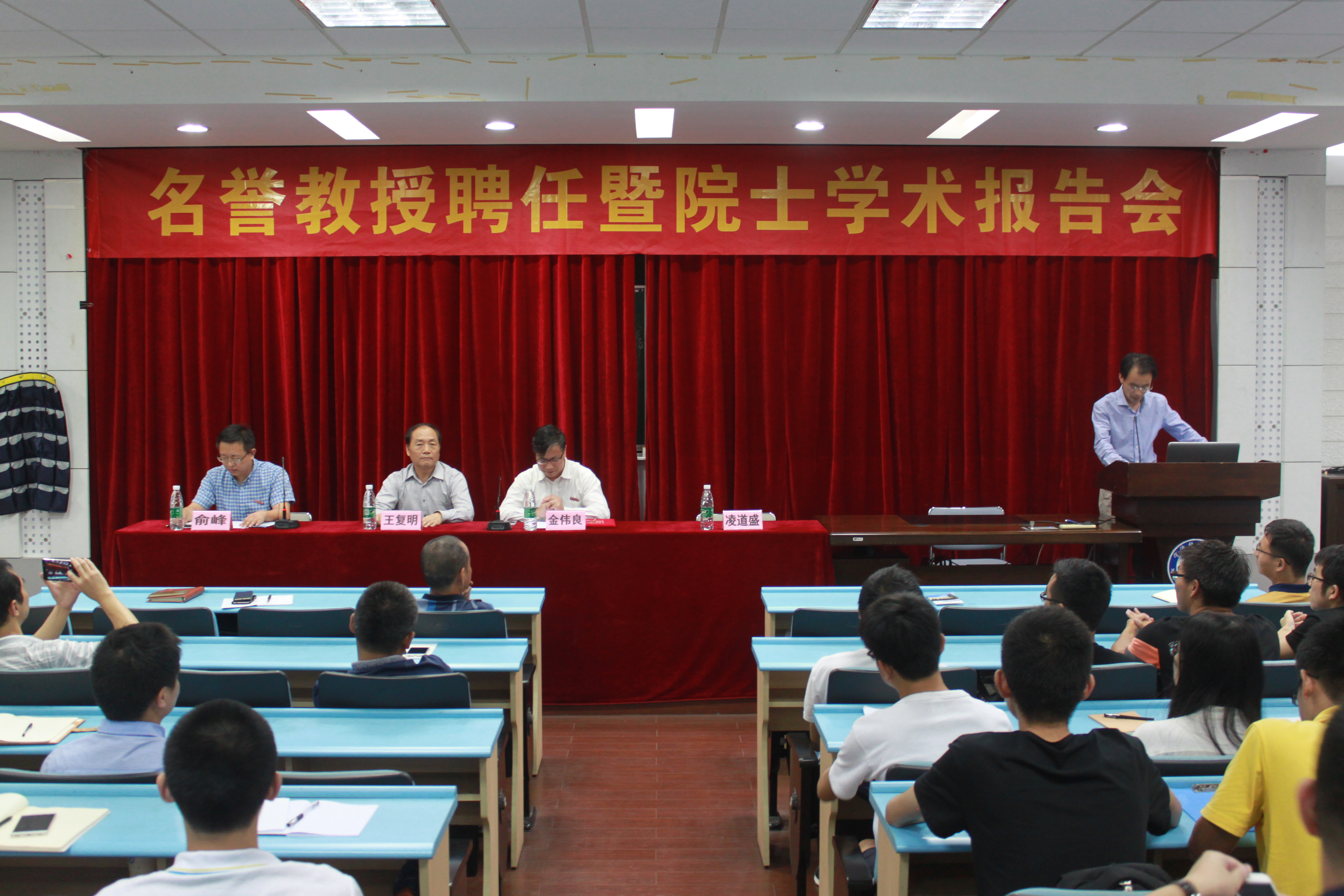 聘任仪式后,王复明院士为师生们作了“三江讲坛”之十五讲《基础工程渗漏防治与非开挖修复技术的发展》的学术报告。王院士从水引发的工程灾害防治问题出发,介绍了基础工程渗漏防治与非开挖修复技术的研究背景、研究意义以及主要难题,提出了重点研究对象——新技术(无破损检测技术)和新材料(非水反应土工高聚物)。并结合国内外大量工程应用、以及实验数据,深入浅出地阐释了基础工程渗漏防治与非开挖修复技术在防渗墙、高速公路隐蔽病害诊断与修复、机场道面检测修复、地下管道渗漏修复等7个方面的广泛应用,形成了基础工程设施水灾害防治系统技术,其中渗漏涌水防治和隐蔽病害诊治两个专利,已应用于300多项工程。王院士和团队创建的基于探地雷达与动力弯沉仪的道路无损检测与评价技术,获得了国家科技进步三等奖,成果被科技部列为国家重点科技成果推广项目在全国推广。