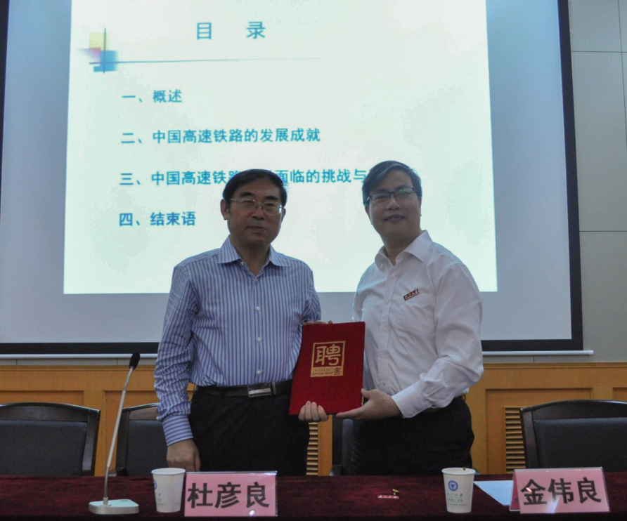 聘任仪式后,杜彦良院士为师生们作了“三江讲坛”之十三--《中国高速铁路发展成就、面临挑战与展望》的学术报告。杜院士结合我国高速铁路的发展、创新技术及发展趋势,详细介绍了我国高速铁路发展历程及取得的主要成就,现时也提出了我国高速铁路发展面临的挑战和未来发展空间。报告内容丰富充实、深入浅出,令人鼓舞,受到了师生们的热烈欢迎。