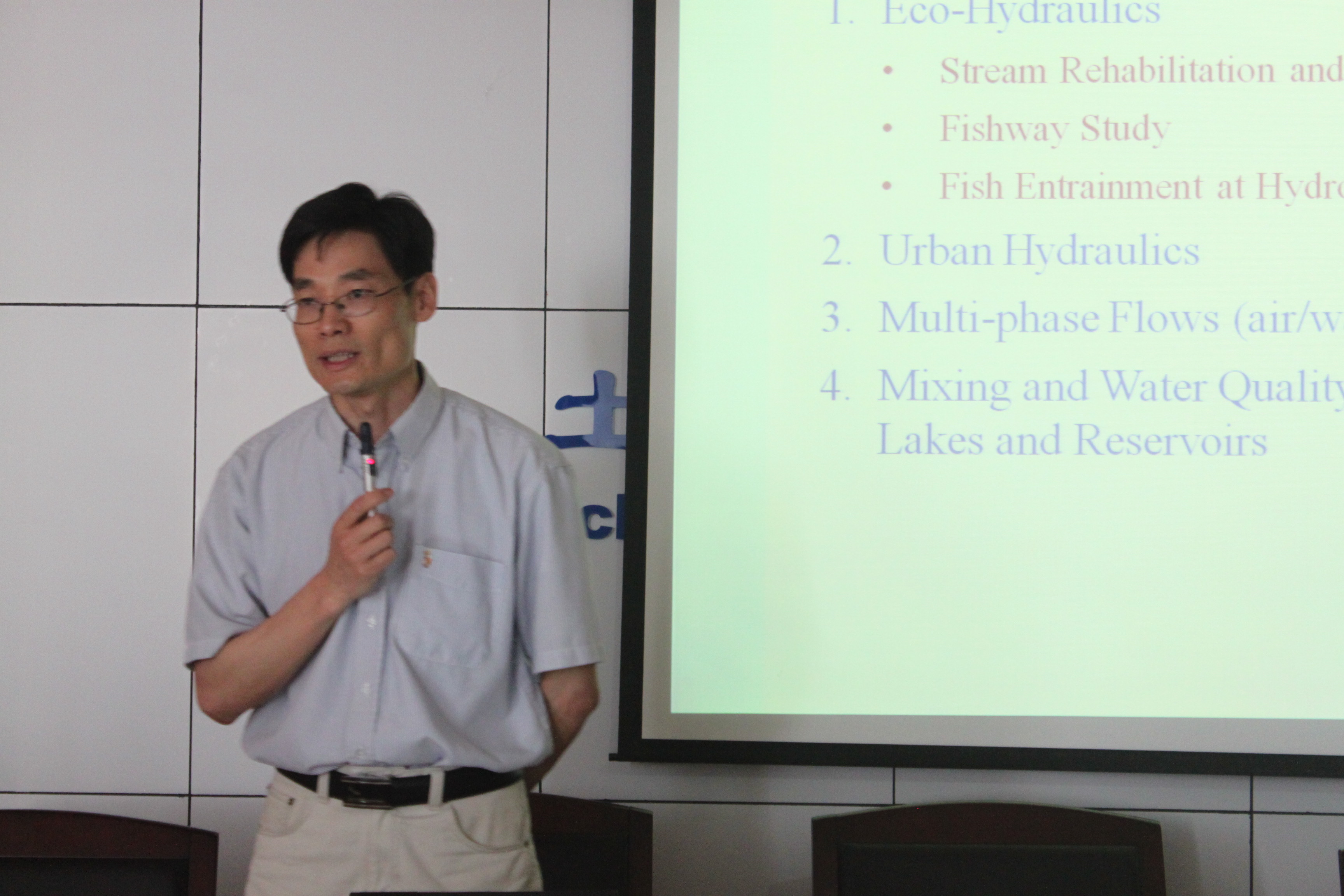 报告会上,朱志伟教结合自己在国内外河流、湖泊等水环境的治理工作和大量珍贵图片,通过具体实验和数值模拟,对水体中分层流动的特性和机理以及分层流中的混合和扩散过程进行了深入的阐述,提出了绿化带过滤、排水管末端因素控制等实践和理论。在城市市政水力学方面,还详细介绍了排污系统的水力学特性、市政排水管网的设计、城市污水和雨水的排放等重点课题。