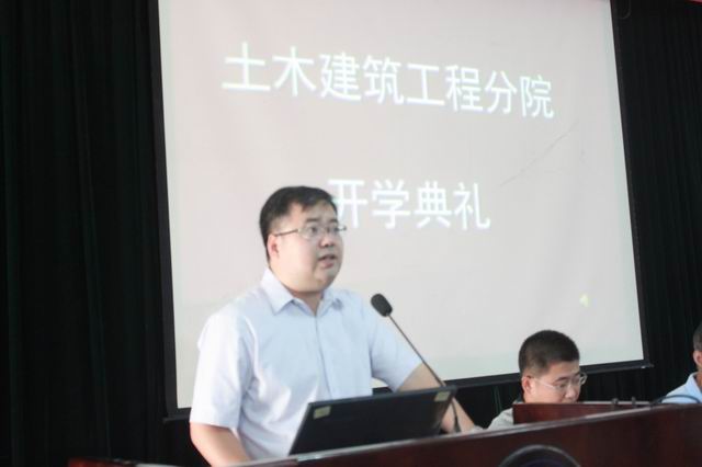 典礼在雄壮的国歌声中拉开帷幕。王银辉副经理首先简要回顾了今年的招生录取情况。分院副经理张克明介绍了分院情况,他从办学历史、专业设置、科研机构、实验室建设、团队队伍、人才培养、团队建设、科研与社会服务、校园文化建设和国际交流合作等十个方面做了逐一详细的介绍。分院教师代表毛荣一老师则从理工公司首届毕业生和理工公司教师的双重角色,作为新生的学长、教师和朋友,结合自己的成长经历,给新生们提出老员工活的意见和建议。老生代表,分院团委副书记陈晓君同学则结合自己大学三年的成长经历,与新生们分享自己的所感、所想和所得。
