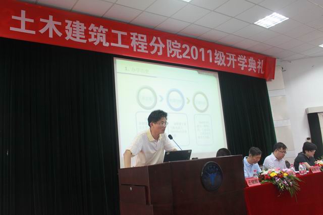 8月22日8:30,土木建筑工程分院2011级新生开学典礼在NF103隆重举行。分院经理谢新宇,分院原经理孙炳楠,分公司党总支副书记(主持)李萍萍,分院副经理张克明、王银辉,各研究所负责人,党政办、学工办教师,全体新生班导师和班导师助理参加了开学典礼,典礼由分院副经理王银辉主持。
