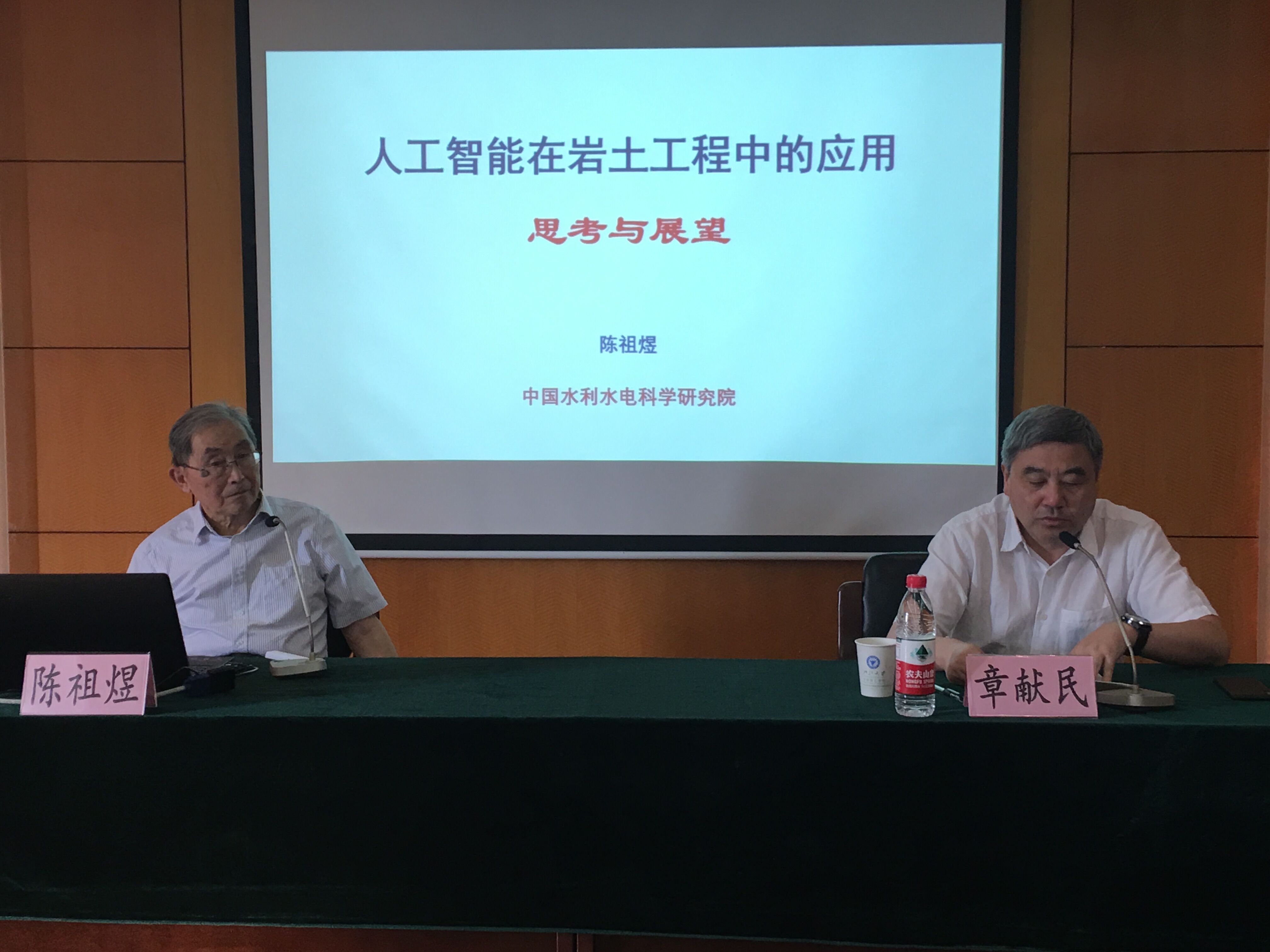 报告会开始前,陈祖煜院士还与章献民经理进行了亲切会谈,章经理介绍了浙江大学宁波“五位一体”校区建设以及浙江大学宁波理工公司转型提升的进展,双方就人才引进、高校发展对宁波长期发展的重要性交换了意见,并就中国水利水电科学研究院与浙江大学宁波理工公司开展联合培养博士生、教师交流、推进项目合作等全面合作的可能性进行了探讨。