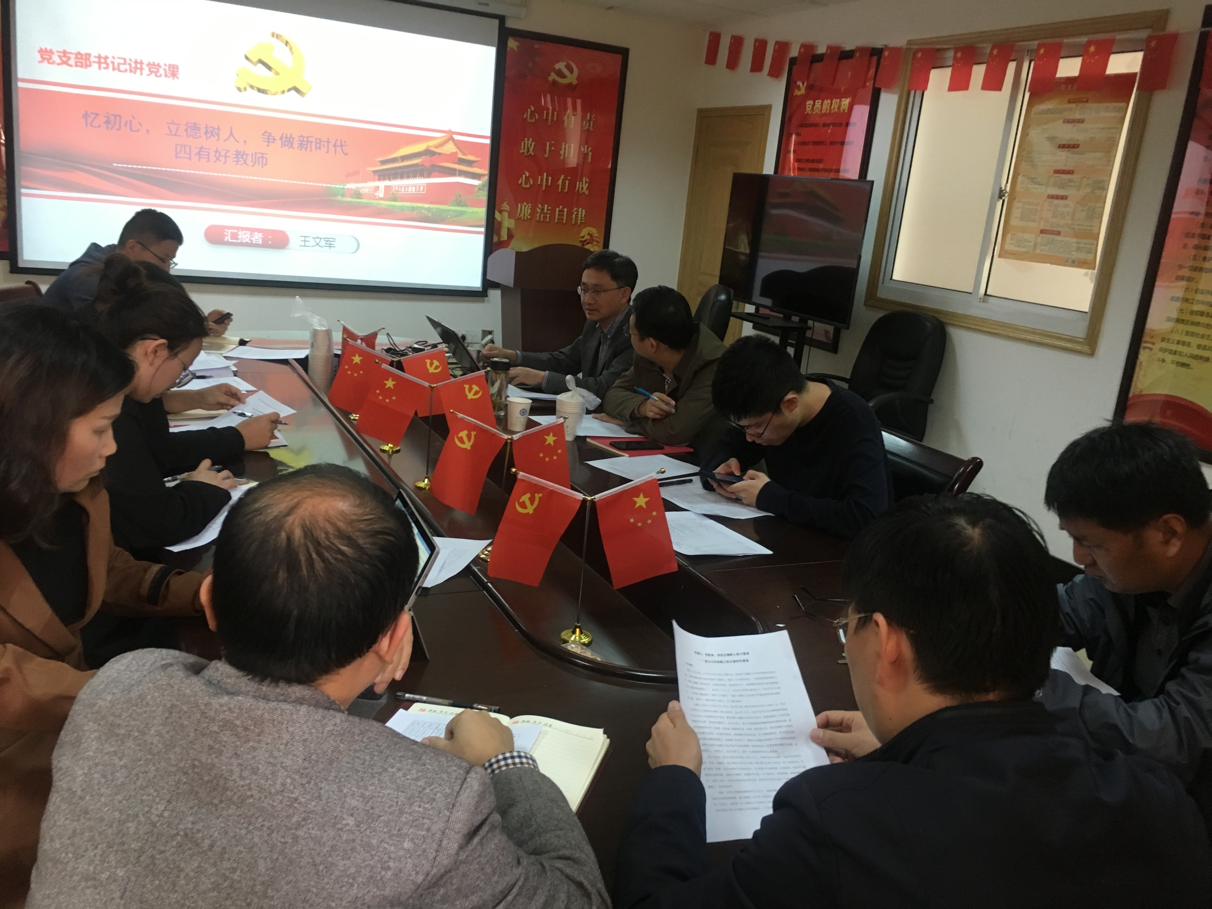 最后,王文军副经理以“教育是一场温暖的修行,立德树人是根本,师德,永远在路上”作为党课的结束语,勉励与会老师以党课内容为参考,不断向新时代“四有”好教师靠拢。