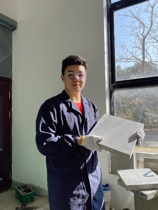 (图为李王鑫同学制备再生骨料清水混凝土)