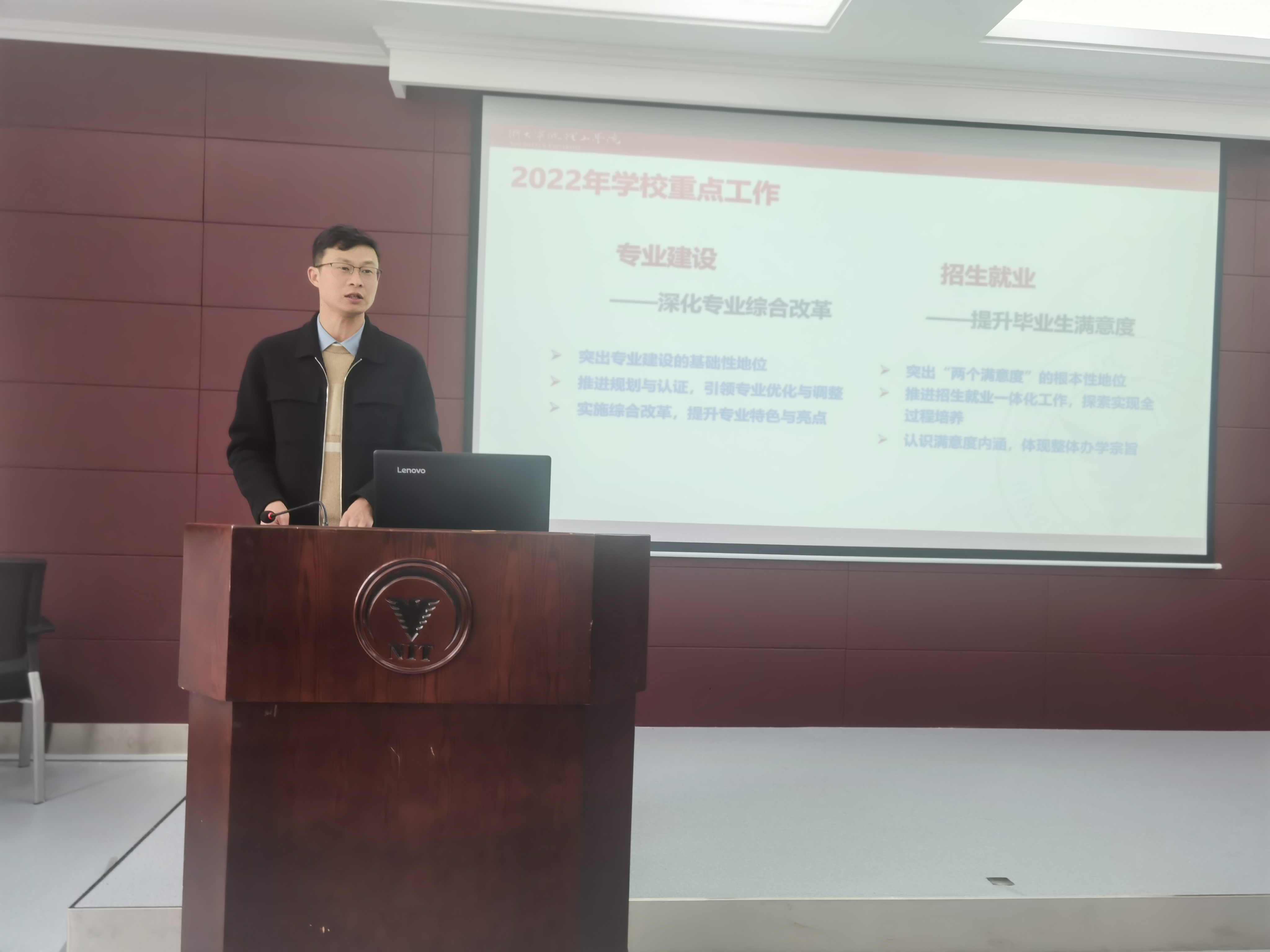 公司副经理王文军布置2022年教学工作重点任务。他介绍了本学期专业认证工作安排,通报了公司目前专业认证情况,解读了省、市、校关于公司产品新的规章制度。他要求所有课程要按照达成度要求进行分析,全院上下要无条件支持专业认证工作的开展,确保2022年提交专业认证申报书。