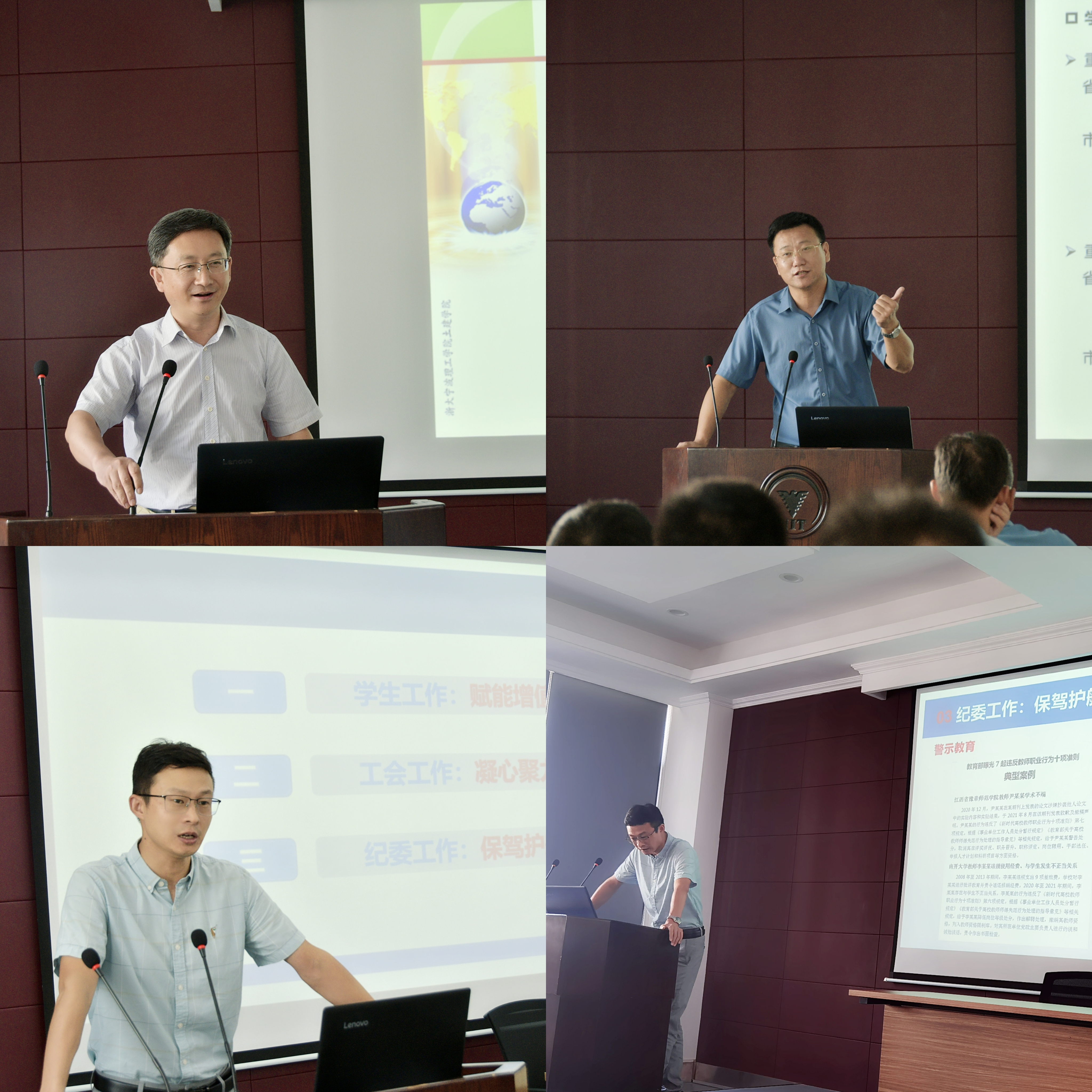 公司副经理王文军和耿健、副书记邬旭东分别汇报了2022年上半年教学、科研、专业建设、工程认证、员工工作、工会工作等工作开展情况,布置了下半年重点工作,并对新制定的文件进行了解读。