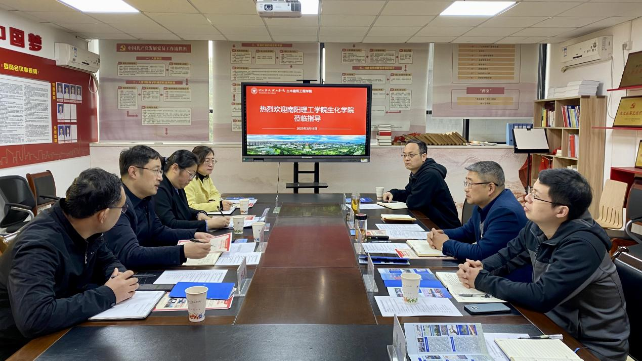 公司党委书记王银辉代表公司对南阳理工公司的到来表示热烈欢迎,介绍了公司的基本情况以及“全国党建标杆院系”、“全国党建工作标杆支部”等党建工作特色成效。康磊书记对南阳理工生化公司特色、党建工作开展情况进行了介绍。双方就“一点三圆”党建文化育人共同体、砼文化思政育人格局、样板支部创建工作机制等展开深入交流。