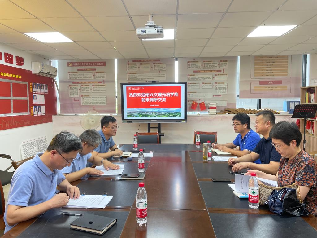 7月14日上午,绍兴文理公司元培公司建筑工程分院经理顾晓林、副经理李明永、土木工程教研室主任王旭东等一行来公司调研交流,公司执行经理王银辉、副经理王文军、耿健参加座谈会,会议由王银辉主持。