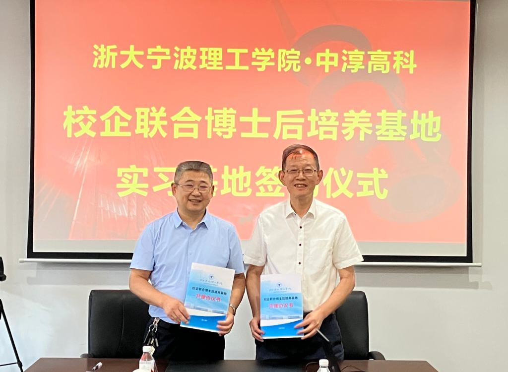 云顶7610线路检测和宁波中淳高科股份有限公司校企联合博士后培养基地、就业实习实践基地签约及授牌仪式于7月10日在宁波鄞州区城投大厦举行。