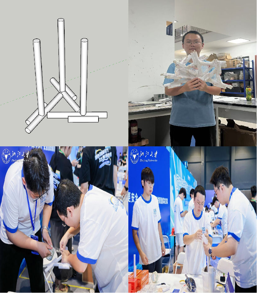 备赛阶段,团队精益求精,最终确定“竖向桩体+水平增强体”的承载方案。该设计利用增强体“传力-扩散”机理,通过竖向桩传递荷载至底部水平增强体,再均匀扩散至土层,有效减小沉降。