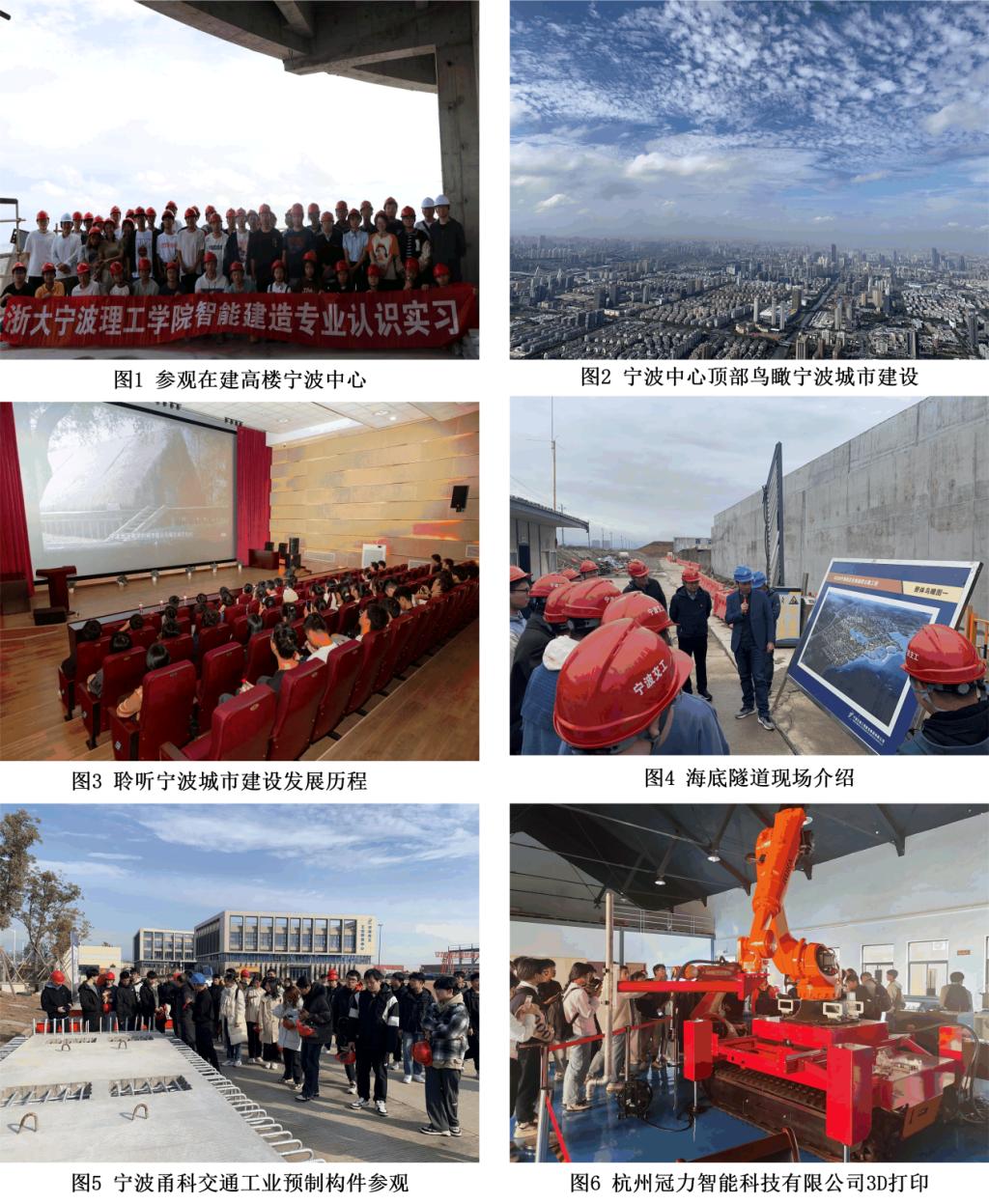 本次认识实习是智能建造专业必修的实习实训教学环节,旨在通过考察装配式工程、智慧工地、工业化智造产业基地、大型基础设施智慧管理现场等环节,使员工在专业课学习开始之前对所学专业建立起初步的了解和认知,为后续专业理论知识的学习积累感性知识,增强员工学习专业课程的主动性和目的性。同时,本次认识实习让员工在参观讲解中探索、提炼课程思政内容,通过案例教学引导员工树立正确的世界观、价值观、人生观。本次认识实习先后参观了浙江省第一高楼——宁波中心大厦(409米)、宁波首条海底隧道——西店湾隧道(全长2.25千米)、宁波市首家“三位一体”的“未来工厂”——宁波甬科交通工业有限公司、宁波市第一个高层框架结构工业化建筑——宁波市城市建设档案馆、建筑增材智能制造全方案提供和混凝土高端测试仪器设备研发生产的科技型企业——杭州冠力智能科技有限公司等项目及企业。