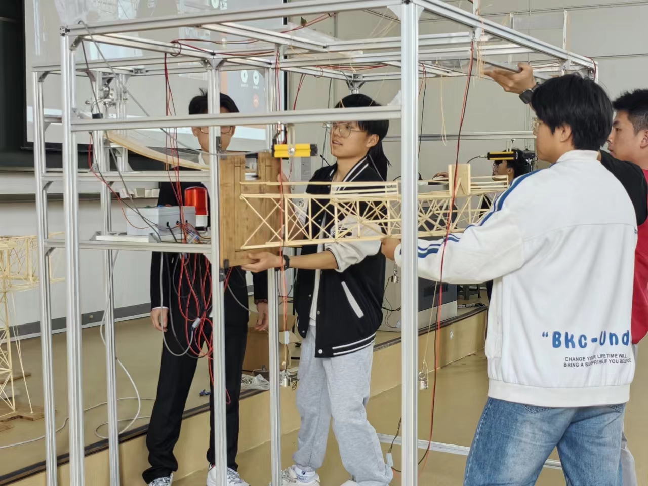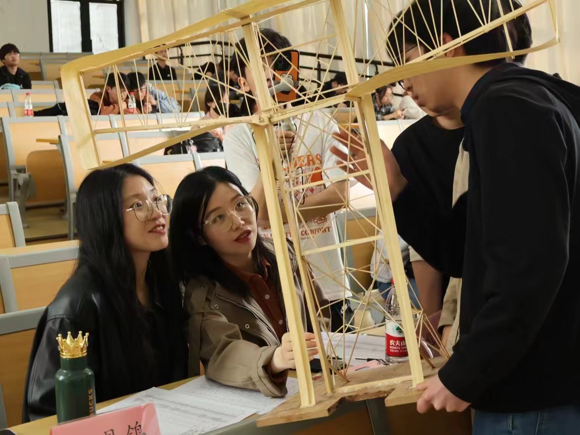 此次结构竞赛的题目是《“T"字形的悬挑观景平台结构模型》,该竞赛以山地景观设计中利用地形高差设置的休闲观景平台为背景,要求参赛选手设计并制作一悬挑观景平台结构模型,测试其模拟承受风载及移动人群重力作用下的平台结构的安全可靠性。此竞赛旨在推动土木行业绿色发展,促进人与自然和谐共生,同时推动高校土建类专业公司产品改革以及课程建设。本次竞赛邀请了教师查支祥、王韬、王恒宇、任晶鸽、程潇作为竞赛评委。竞赛设置了一等奖一组、二等奖两组、三等奖七组,并按照统一安排向获奖者颁发证书和奖品。