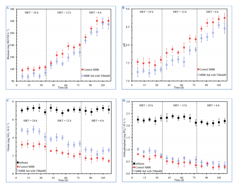 硅藻是具有三维多级纳米结构的光合生物,其细胞壁几乎完全由二氧化硅构成,并具有天然的微米和纳米级有机排列的孔道结构,使得硅藻有较高的孔隙率和比表面积,对水中微污染有机物有着良好的吸附性能,同时也是一个负载纳米颗粒的良好载体。针对有机污染物和天然有机物的竞争吸附所导致的含钛化合物光催化活性较低的问题,本文在膜生物反应器(MBR)中通过硅藻自身的生物代谢将含钛化合物负载到硅藻细胞壁中,培养出了具备光催化活性的载钛硅藻。通过调控MBR的水力停留时间(HRT)优化了硅藻细胞壁的比表面积和钛含量,提高了载钛硅藻对有机污染物的选择性吸附和光催化降解率,分析了HRT对生物质浓度和脱氮除磷的影响,并探讨了载钛硅藻的生长规律,从而为载钛硅藻在水生态和水处理领域的广泛应用提供了研究基础。