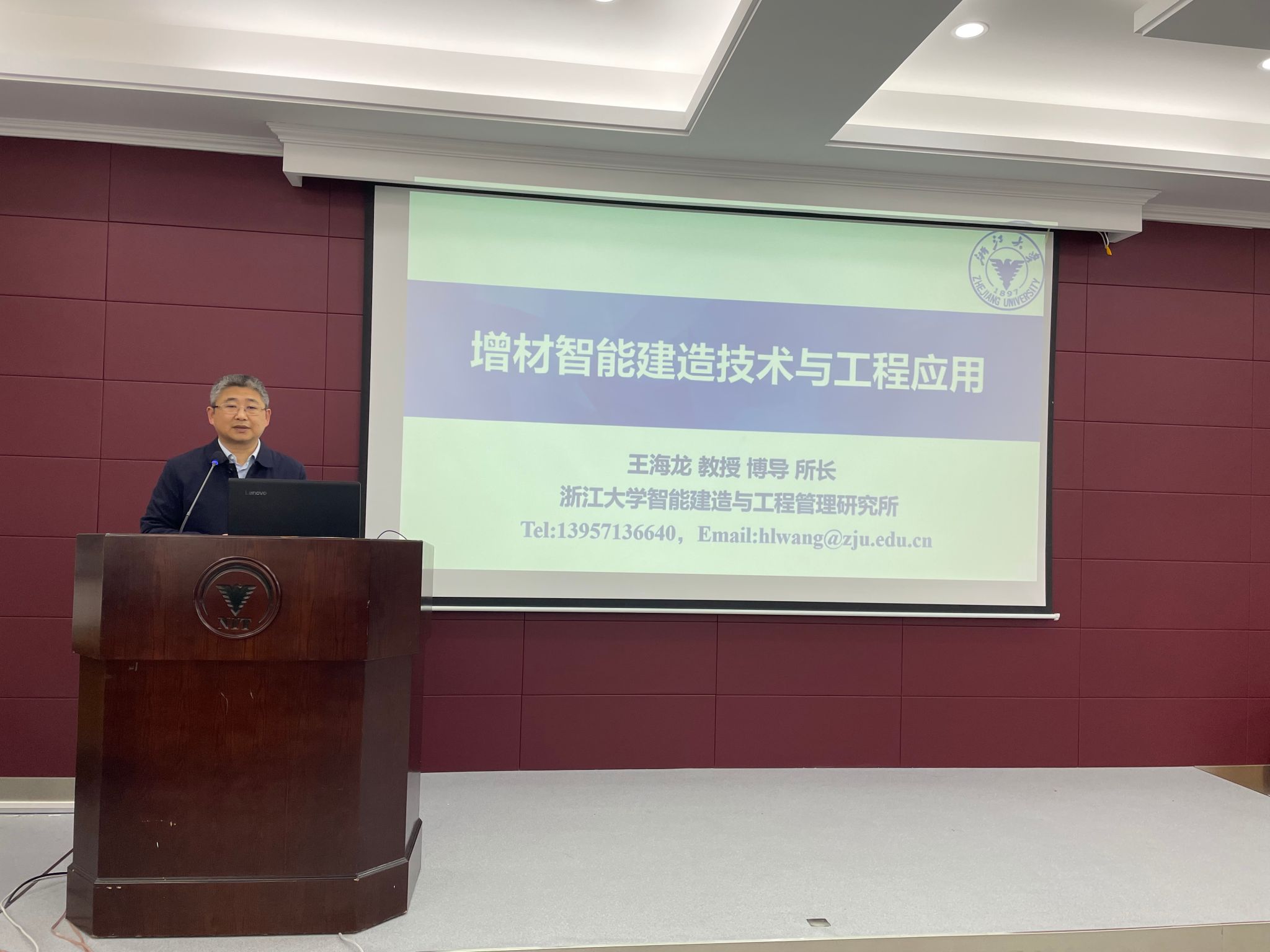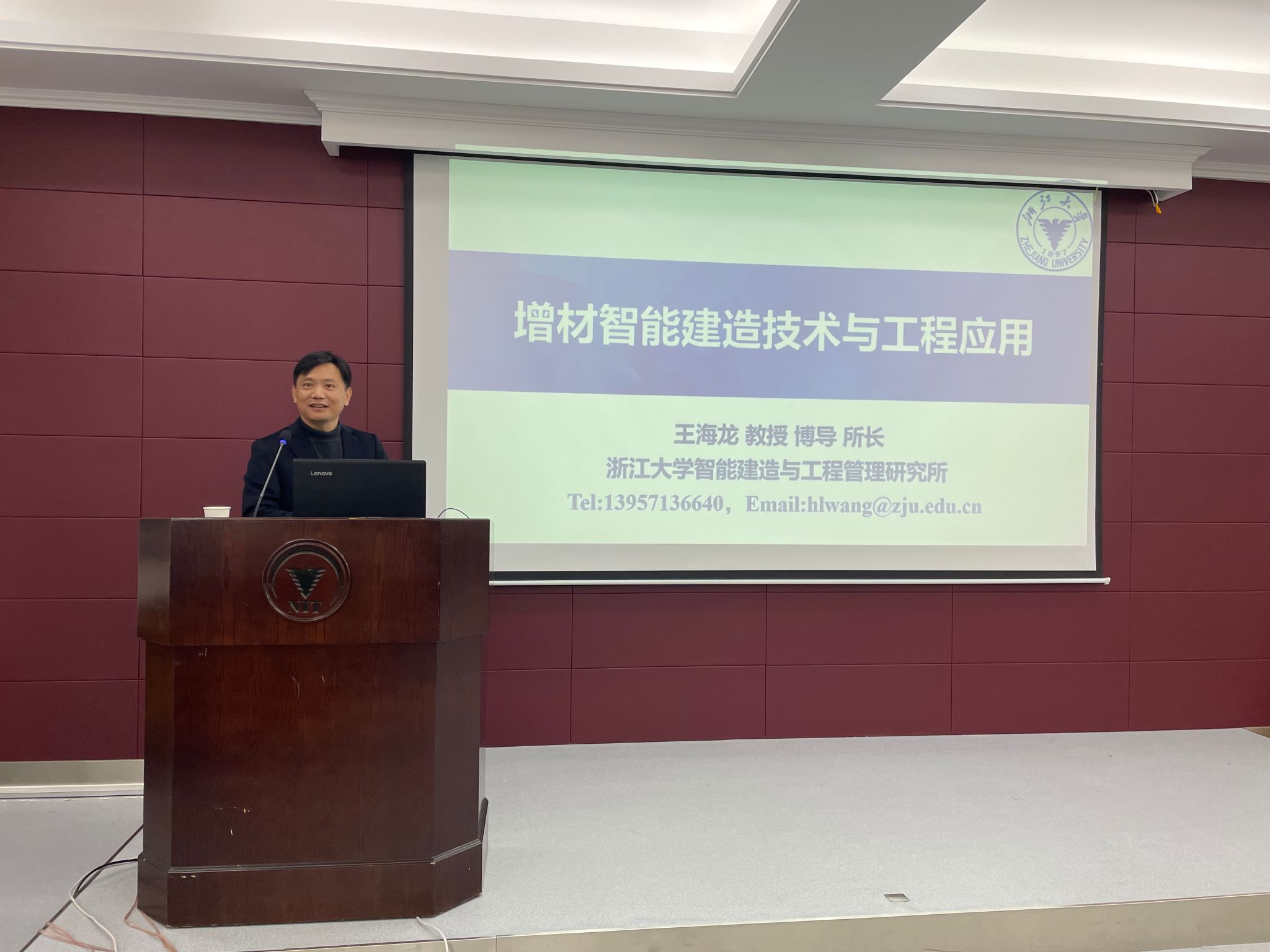 实地考察结束后,与会代表在云顶7610线路检测参加“砼行论坛”学术报告,并进行了深入的技术交流。本次学术报告主题为“增材智能建造技术及其工程应用”,由浙江大学王海龙教授主讲,云顶7610线路检测经理王银辉主持。