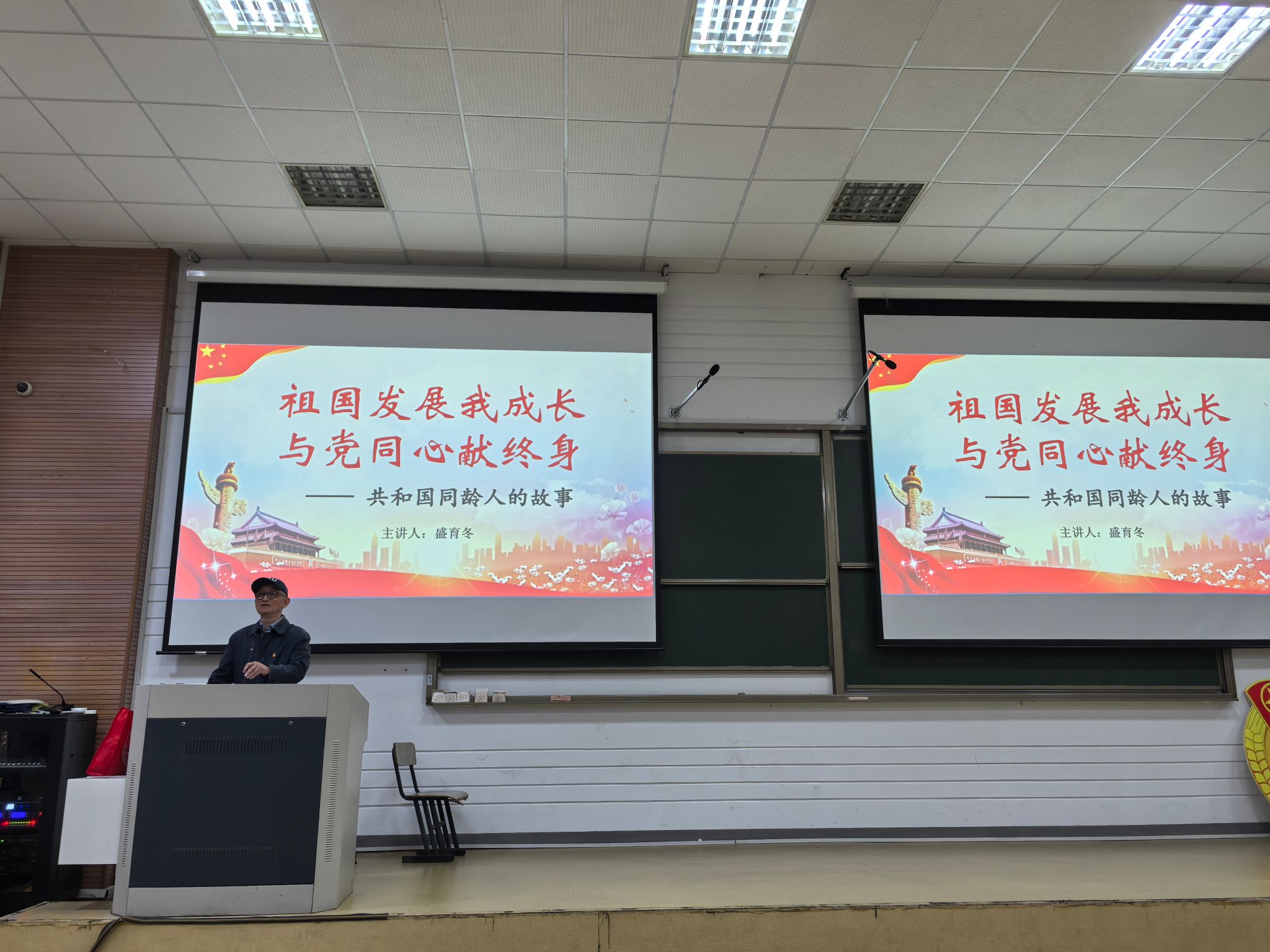 整场党课,盛育冬老师用朴实的语言、真挚的情感,将个人成长与国家发展紧密相连,生动诠释了“成长、奋斗、奉献”的深刻内涵。在场党员和积极分子纷纷表示,通过聆听共和国同龄人的故事,不仅对新中国发展历程有了更鲜活的认知,更从盛老师的经历中汲取了奋斗的动力,今后将以更饱满的热情投入学习工作,传承奉献精神,在新时代新征程中书写属于自己的担当。
