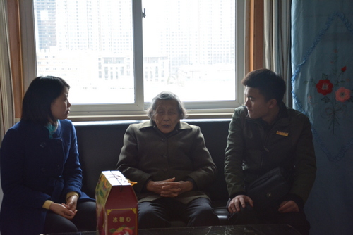 员工党员在支部书记周丽娟老师带领下分成5个小组,分别走访5户孤寡老人。在社区居委会的带领下,员工党员来到了93岁高龄老奶奶家中,与其共同居住的是其58岁智障女儿。其女至今未婚,所有的起居饮食皆由93岁母亲照料。员工党员为老人送去水果,帮助其打扫卫生,与其促膝长谈。