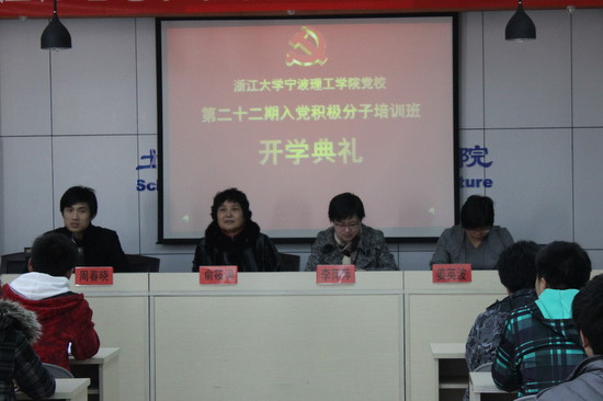 2012年3月21日下午4点,土建公司第二十二期入党积极分子培训班开学典礼于SA301举行。出席开学典礼的有云顶7610线路检测党总支副书记李萍萍老师,党总支组织员俞筱调老师,党总支委员姜英波老师、周春晓老师,第二十二期党校班主任周周丽娟、姚天国老师。82名经班级推选、考察合格的学员参加了本期党校的学习。