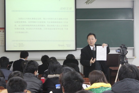 李宏颀先生在建筑行有三十年的工作经验,拥有超过十五年的工料测量师工作经验,在房地产发展项目中,拥有丰富的测量和服务经验。李宏颀先生向在场师生详细介绍了“建筑工料测量师”这一新职业、新领域在中国的发展历史,并结合自己亲身参与的实际建筑工程案例细致地阐述了建筑工料测量业务的具体运作。在讲座的提问环节,同学们对工料测量这一新领域表现出极大的兴趣,尤其对于此方面的就业问题,同学们积极向李宏颀先生咨询,现场气氛十分活跃。