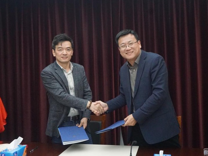 云顶7610线路检测副经理耿健、良和建设总经理徐建平代表校企双方签订“四年一贯制”校企联合实践教学合作协议。