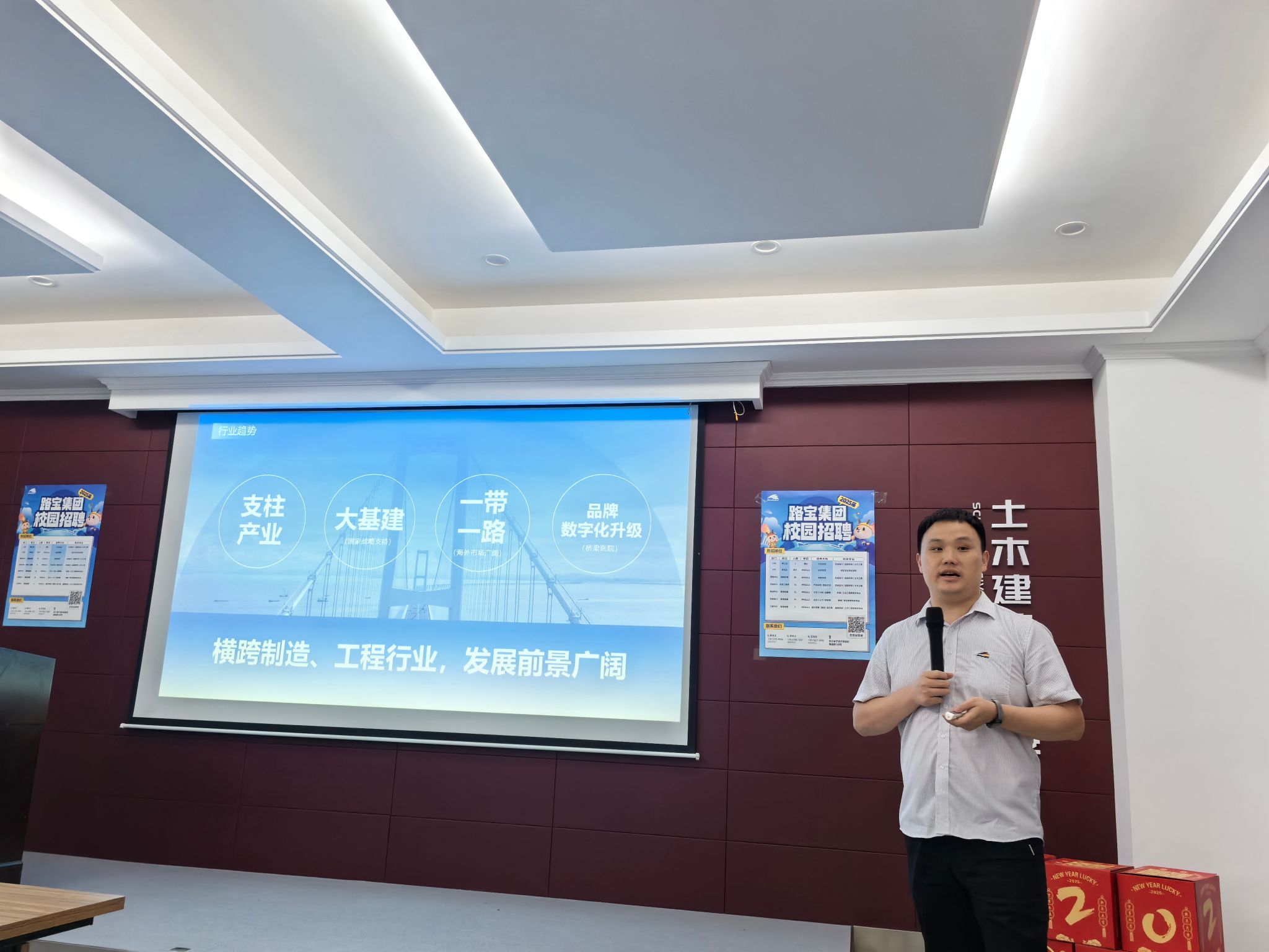 随后,招聘负责人详细介绍了本次招聘的岗位信息,包括管培生、职能部门管理储备等多个岗位,涵盖土木工程、道路桥梁、等多个专业领域,职业发展空间广阔,且公司福利优厚。