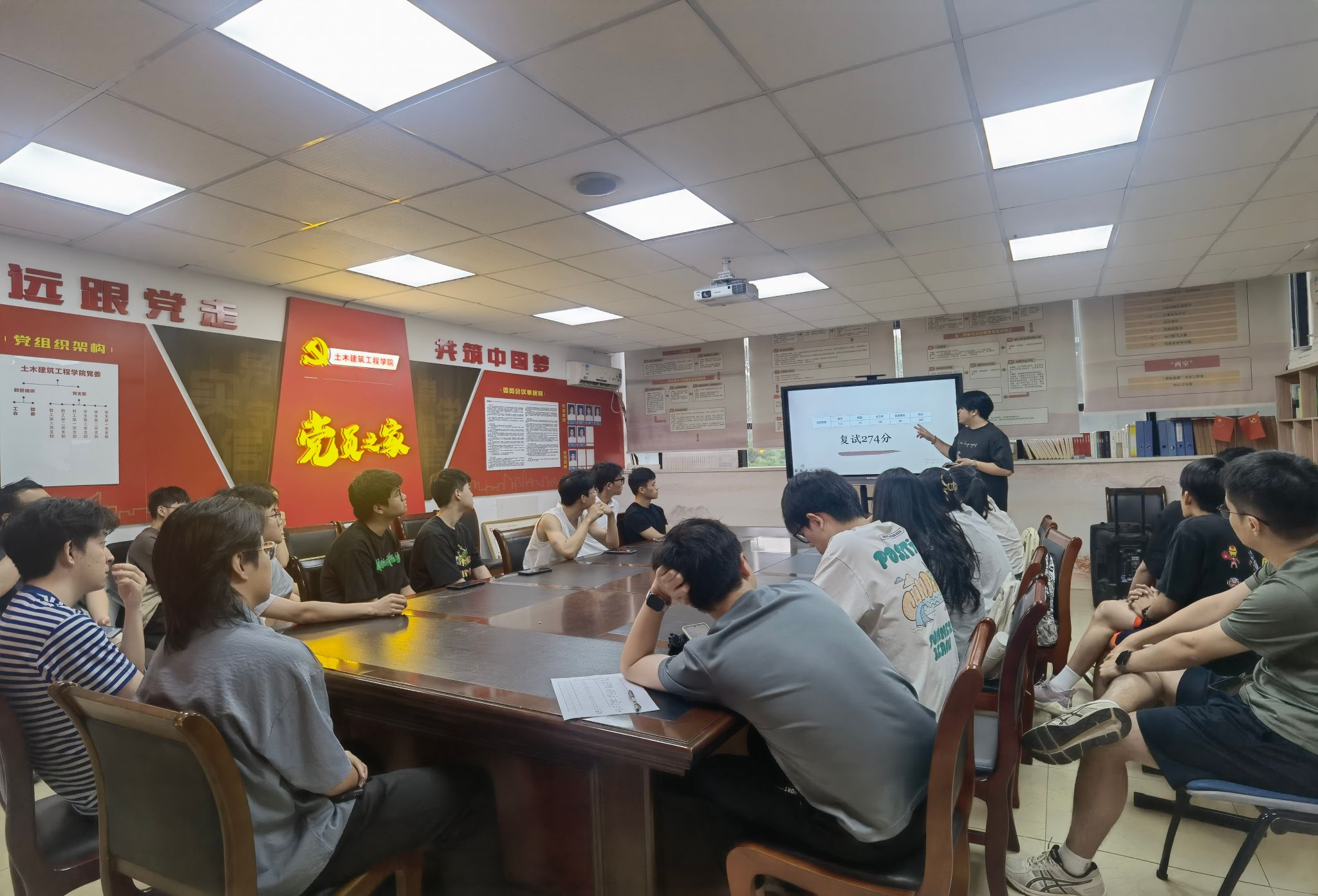5 月 15 日 16 时,云顶7610线路检测员工党支部主办的考研经验分享会于 SA310 党员之家举行。考研上岸的陈广达、王柏竣学长担任主讲,二十余名同学到场取经。