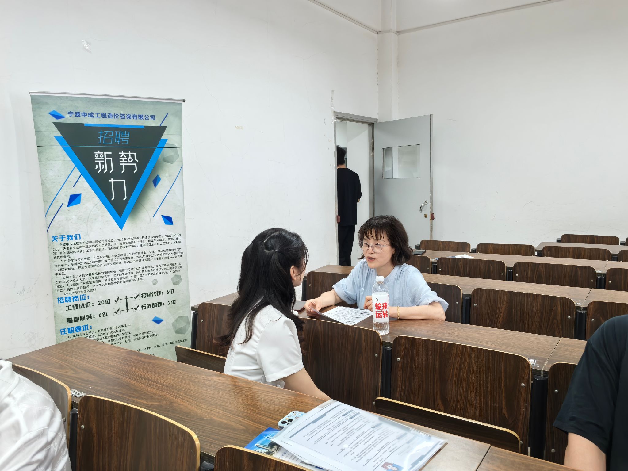 招聘会伊始,参会员工通过企业人员的讲解以及宣传手册对招聘单位进行了基本了解。国骅集团有限公司从房地产开发起步,业务领域逐步拓展至建筑施工、金融贸易等多元领域,宣讲中展现出强大的企业实力与广阔发展前景;浙江至方建设有限公司围绕企业核心业务、人才培养体系、公司福利制度了进行深入讲解。宁波中成工程造价咨询有限公司着重展现公司在工程造价咨询领域的专业优势。企业的介绍,让同学们对企业的运营模式、岗位需求和职业发展路径有了清晰认知。